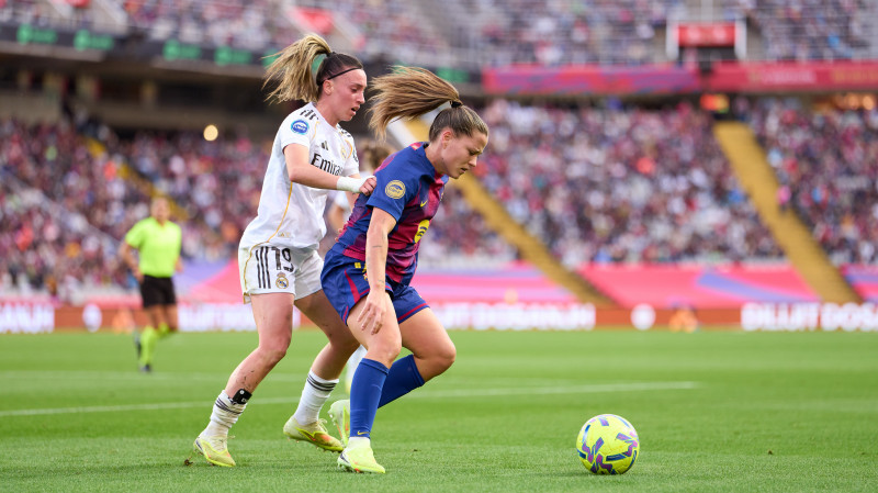 The *azulgranas* defeated Real Madrid CF 2-6 in the first leg of the Champions League quarter-finals. Ewa Pajor, with a brace, Esmee Brugts, Irene Paredes, Vicky López and Alexia Putellas, from the penalty spot, scored the goals for the *blaugranas*, while Linda Caicedo netted both goals for Real Madrid CF.