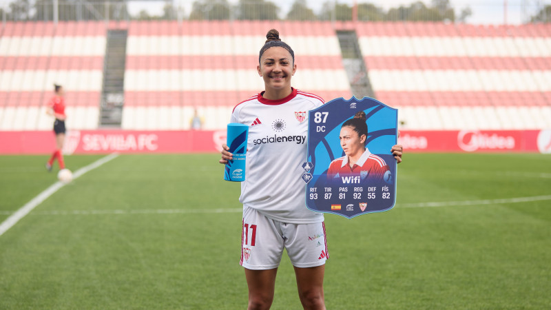 Sevilla FC player Lucía Moral 'WIFI' received the Player of the Month trophy for February in Liga F Moeve, along with her special FC 26 item, which can be enjoyed in the EA SPORTS video game. The Cordoban forward scored four goals, including two braces, during this month of competition.